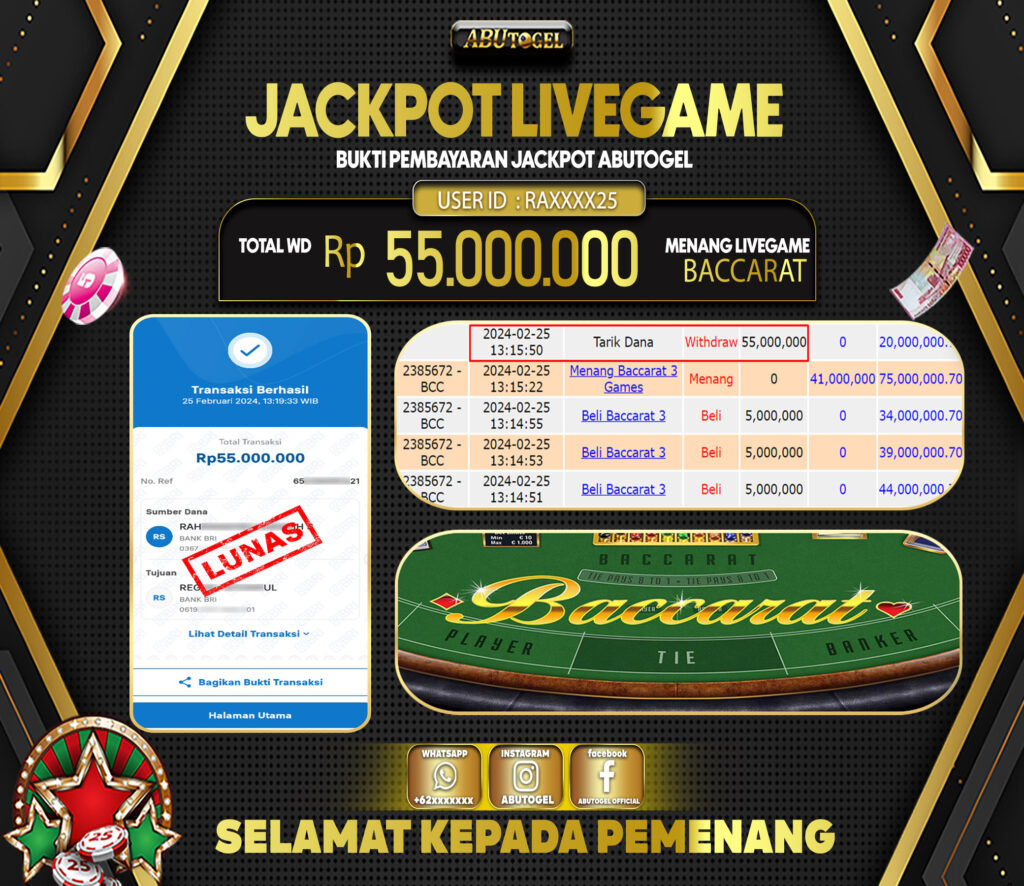 3 min readBukti Jackpot ABUTOGEL Live Casino Minggu 25 Februari 2024 – ABUTOGEL adalah situs live casino terpercaya. Berikut ini kami berikan info buktu jackpot member abutogel yang sudah kami bayar lunas dalam permainan live casino.