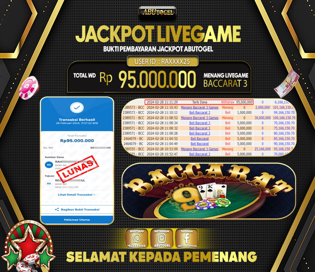 3 min readBukti Jackpot ABUTOGEL Live Casino Rabu 28 Februari 2024 – ABUTOGEL adalah situs live casino terpercaya. Berikut ini kami berikan info buktu jackpot member abutogel yang sudah kami bayar lunas dalam permainan live casino.