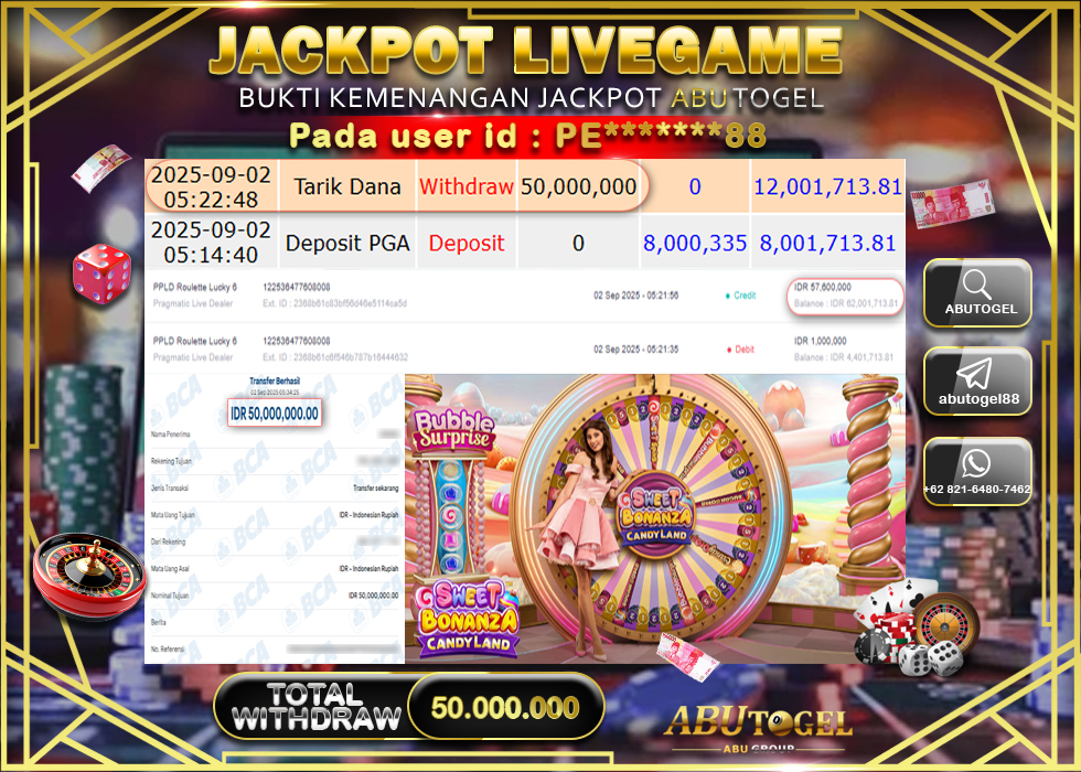 Bukti Jackpot ABUTOGEL Live Casino Selasa 02 September 2025