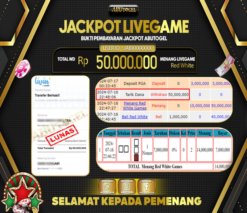 3 min readBukti Jackpot ABUTOGEL Live Casino Selasa 16 Juli 2024 – ABUTOGEL adalah situs live casino terpercaya. Berikut ini kami berikan info buktu jackpot member abutogel yang sudah kami bayar lunas dalam permainan live casino.