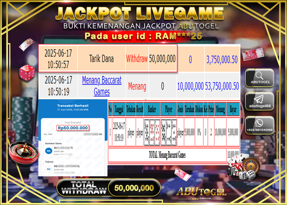 Bukti Jackpot ABUTOGEL Live Casino Selasa 17 Juni 2025