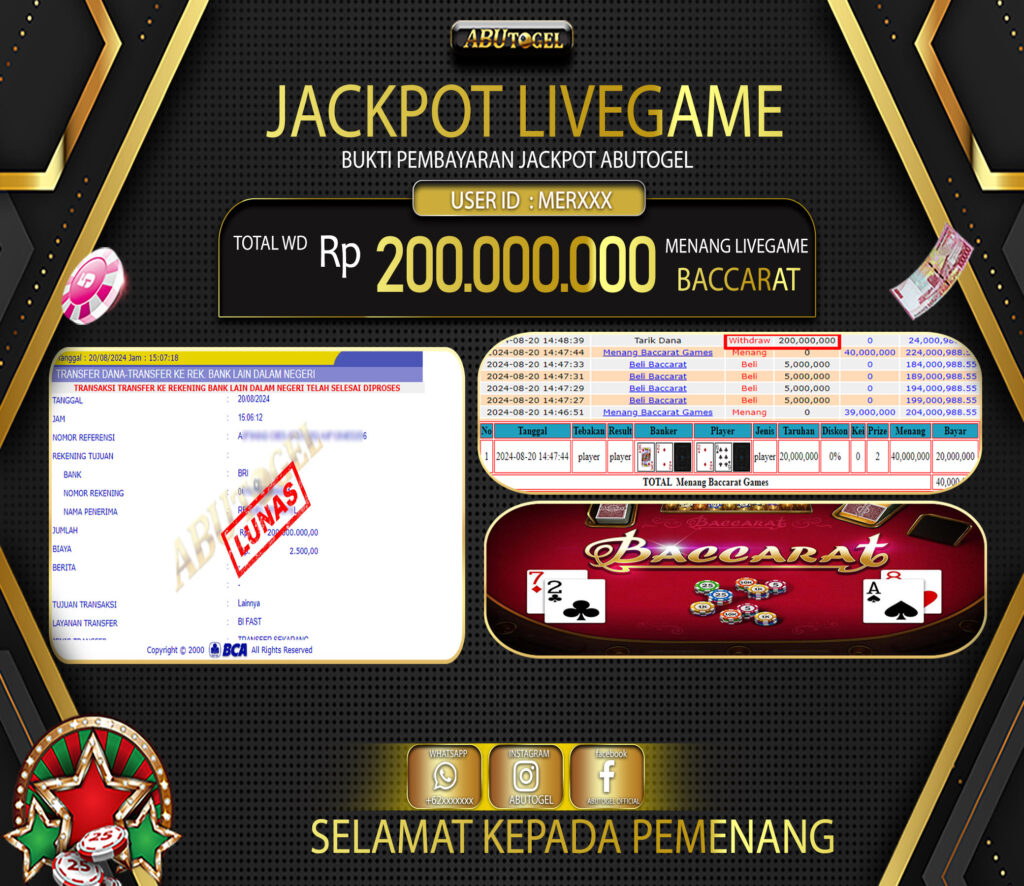 Bukti Jackpot ABUTOGEL Live Casino Selasa 20 Agustus 2024
