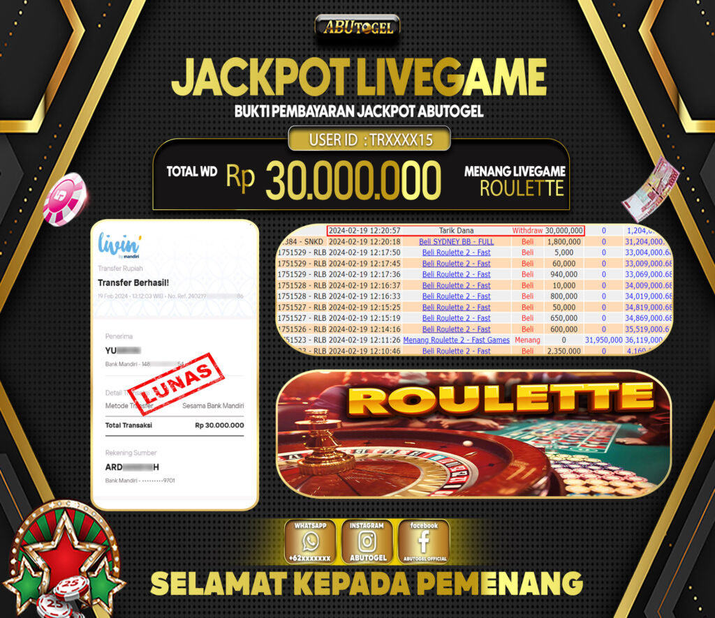 Bukti Jackpot ABUTOGEL Live Casino Senin 19 Februari 2024