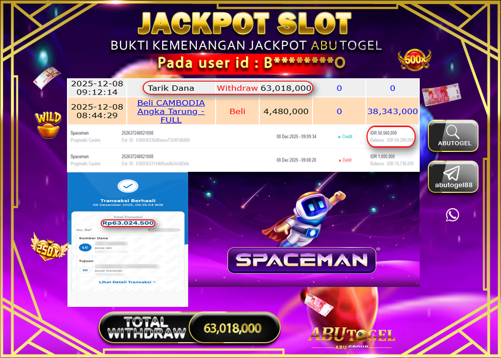 Berikut adalah Bukti Jackpot Slot Online ABUTOGEL Jumat 12 Desember 2025 :
