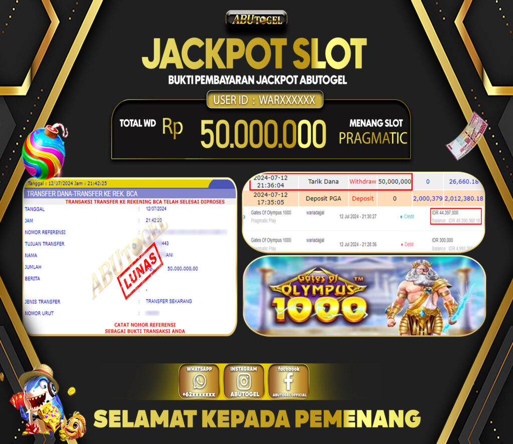 3 min readBukti Jackpot ABUTOGEL Slot Online Jumat 12 Juli 2024 – ABUTOGEL adalah situs slot gacor maxwin terpercaya. Berikut ini kami berikan info buktu jackpot member ABUTOGEL yang sudah kami bayar lunas dalam permainan slot gacor.