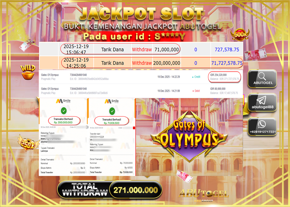 Berikut adalah Bukti Jackpot Slot Online ABUTOGEL Jumat 19 Desember 2025 :