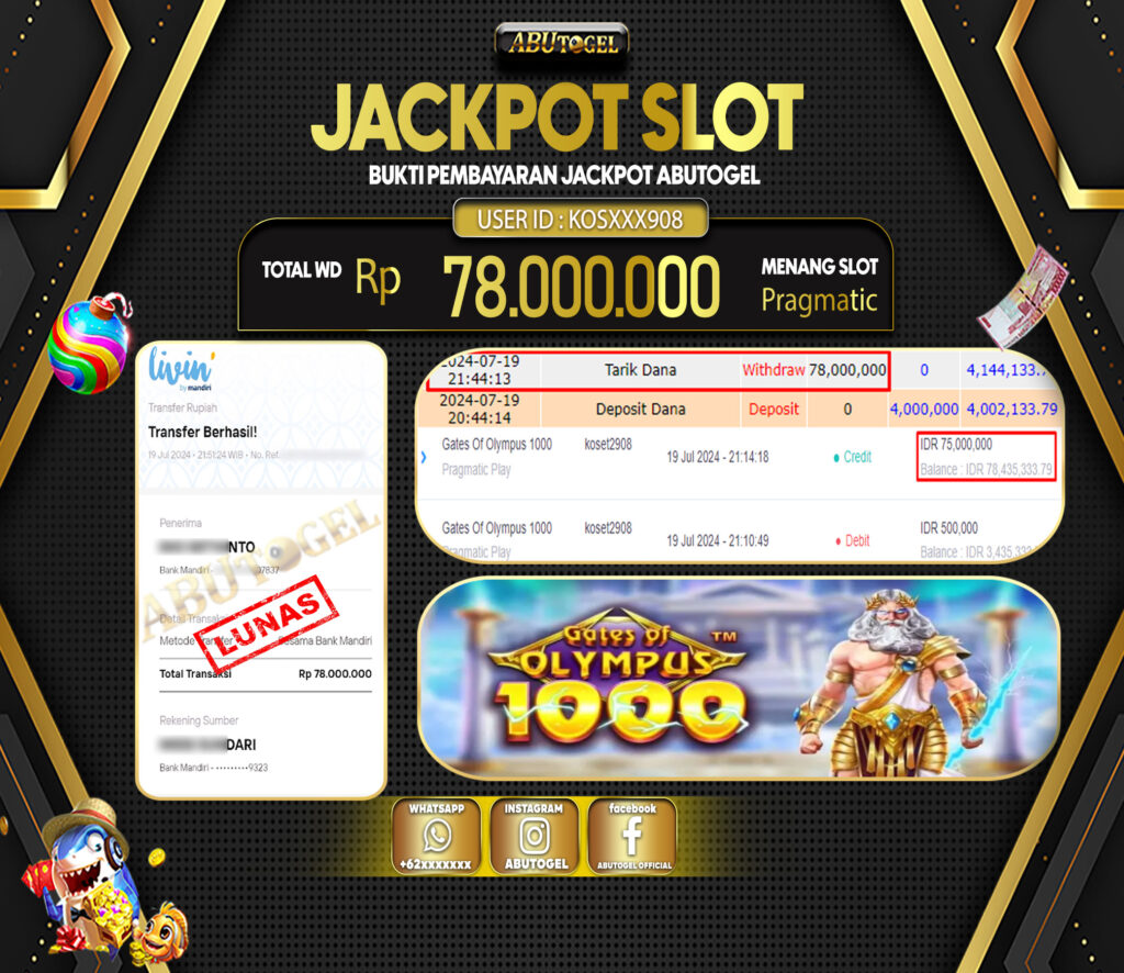 Berikut adalah Bukti Jackpot ABUTOGEL Slot Online Jumat, 19 Juli 2024 :