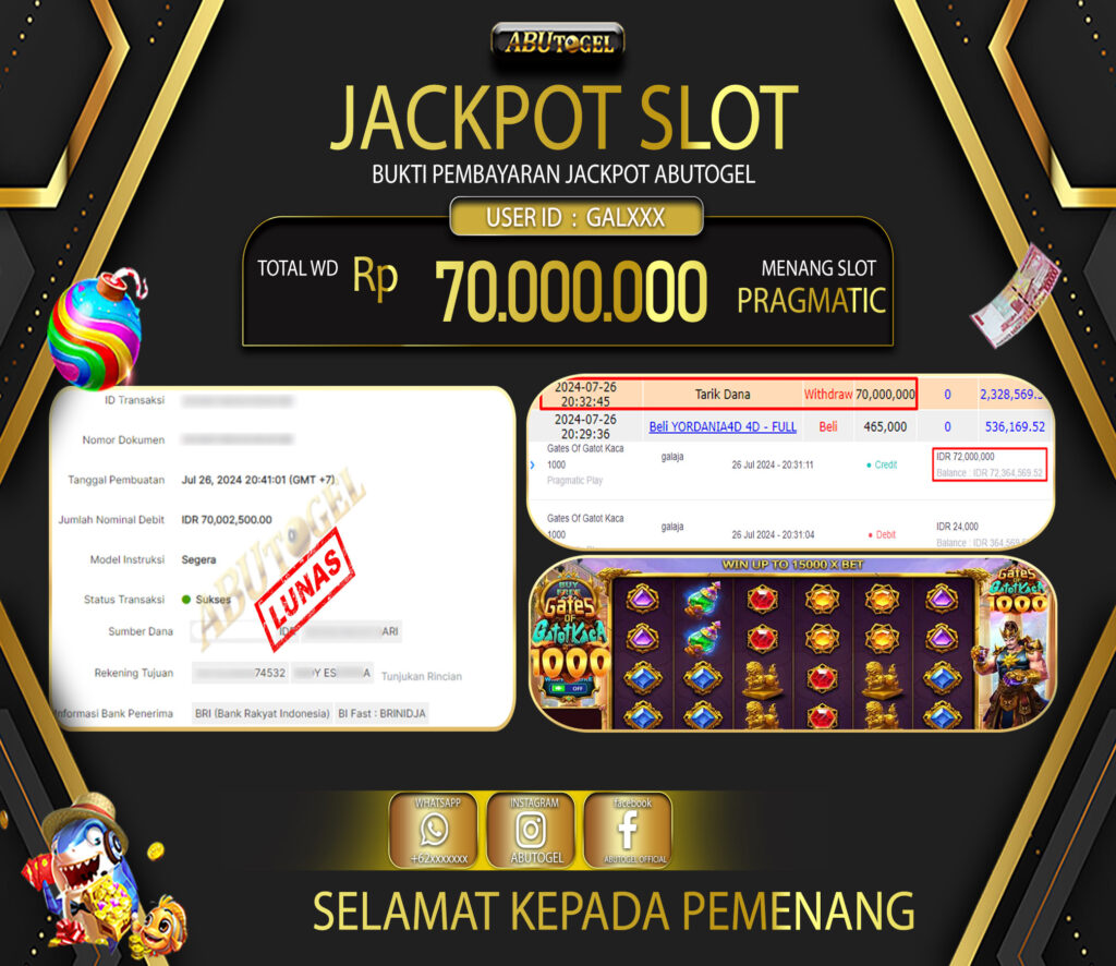 3 min readBukti Jackpot ABUTOGEL Slot Online Jumat 26 Juli 2024 – ABUTOGEL adalah situs slot gacor maxwin terpercaya. Berikut ini kami berikan info buktu jackpot member ABUTOGEL yang sudah kami bayar lunas dalam permainan slot gacor.
