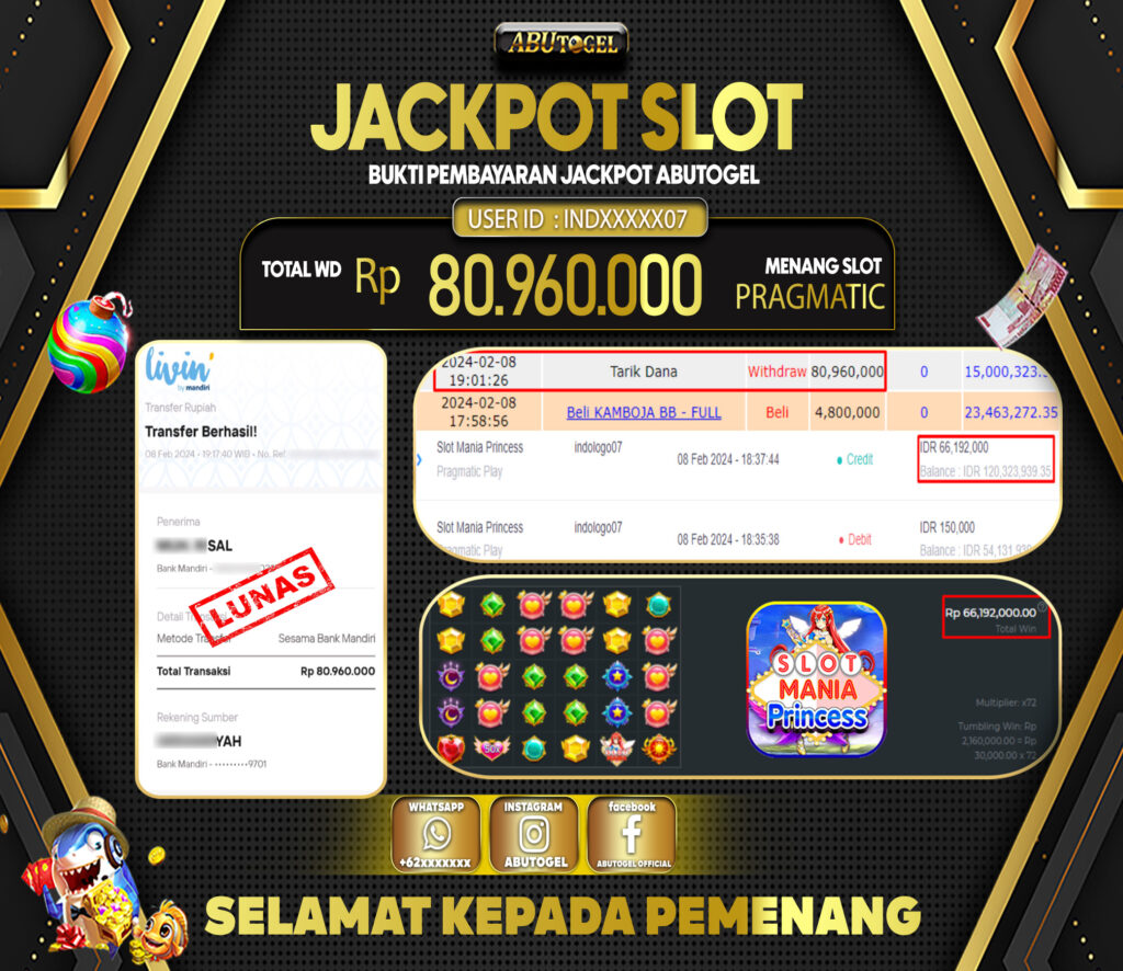 3 min readBukti Jackpot ABUTOGEL Slot Online Kamis 08 Februari 2024 – ABUTOGEL adalah situs slot gacor maxwin terpercaya. Berikut ini kami berikan info buktu jackpot member ABUTOGEL yang sudah kami bayar lunas dalam permainan slot gacor.