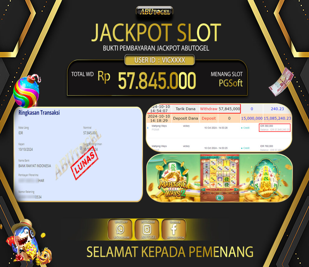 3 min readBukti Jackpot ABUTOGEL Slot Online Kamis 10 Oktober 2024 – ABUTOGEL adalah situs slot gacor maxwin terpercaya. Berikut ini kami berikan info buktu jackpot member ABUTOGEL yang sudah kami bayar lunas dalam permainan slot gacor.