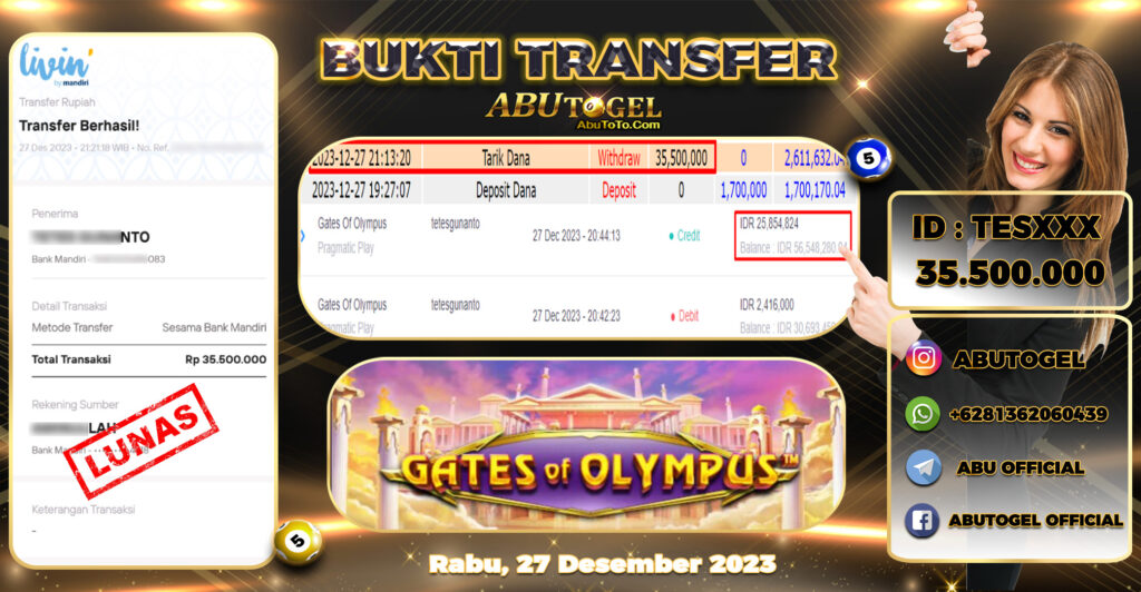 Bukti transfer yang kami publis adalah bukti kemengan player di atas 30 juta dan sudah kami bayar lunas tanpa di cicil. Untuk bukti pembayaran lainnya kalian dapat langsung melihatnya di group facebook resmi ABUTOGEL.