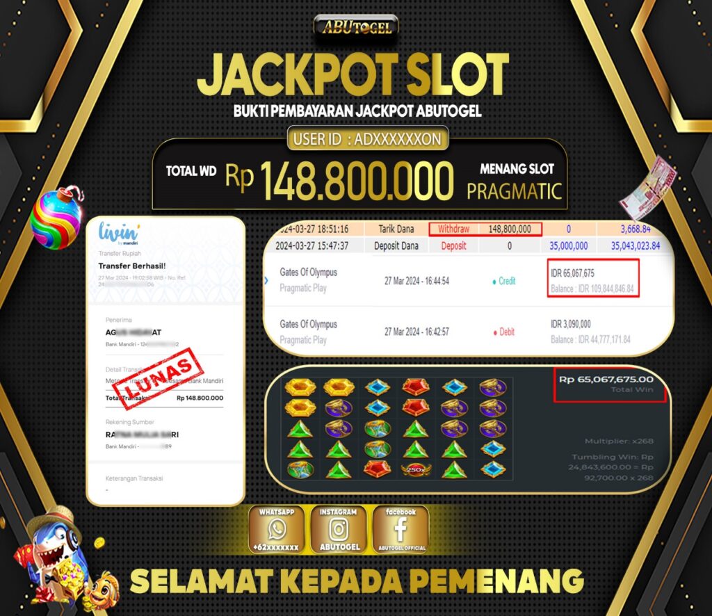3 min readBukti Jackpot ABUTOGEL Slot Online Kamis 28 Maret 2024 – ABUTOGEL adalah situs slot gacor maxwin terpercaya. Berikut ini kami berikan info buktu jackpot member ABUTOGEL yang sudah kami bayar lunas dalam permainan slot gacor.