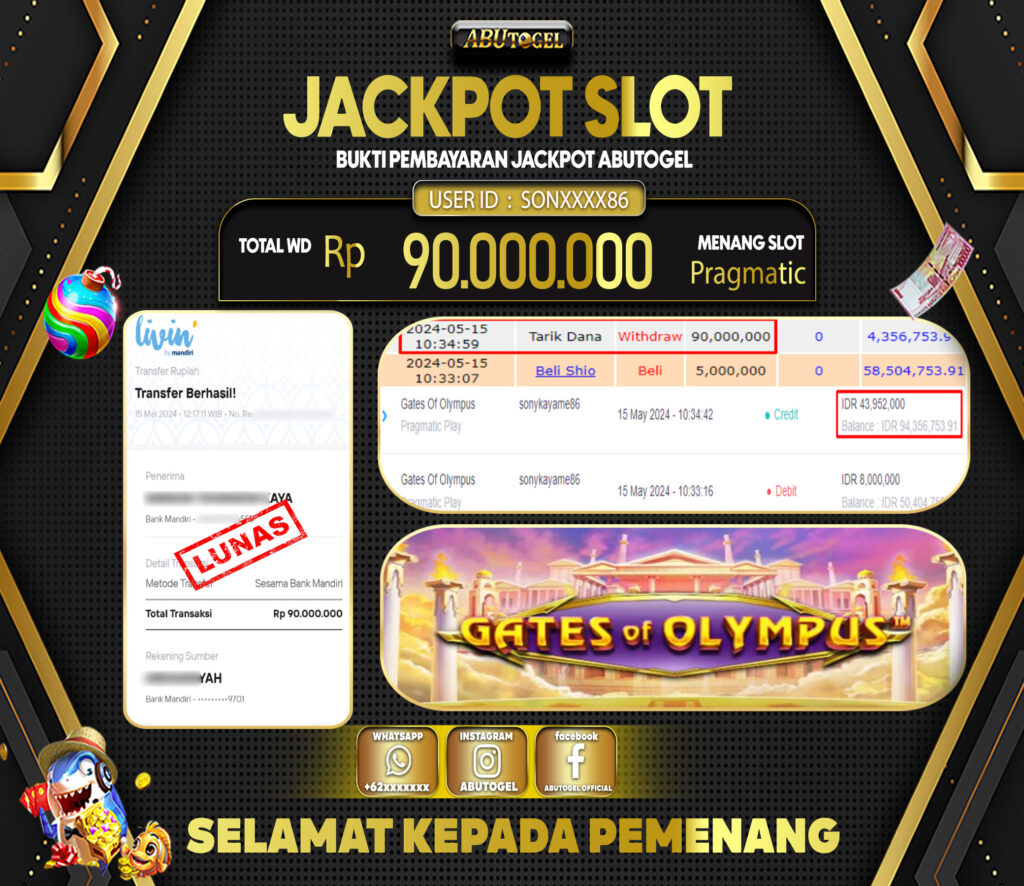 Berikut adalah Bukti Jackpot ABUTOGEL Slot Online Rabu, 15 Mei 2024 :