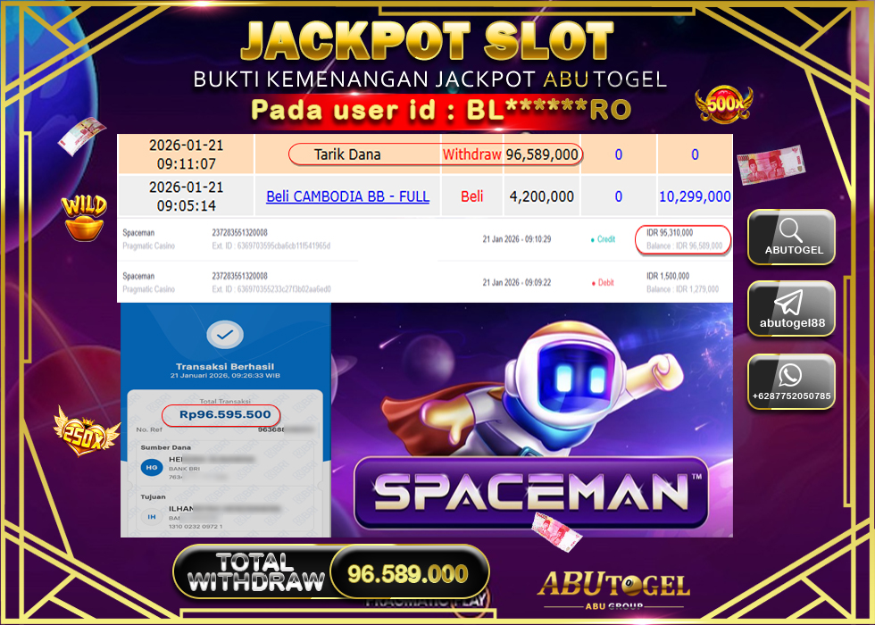 Berikut adalah Bukti Jackpot Slot Online ABUTOGEL Rabu 21 January 2026 :