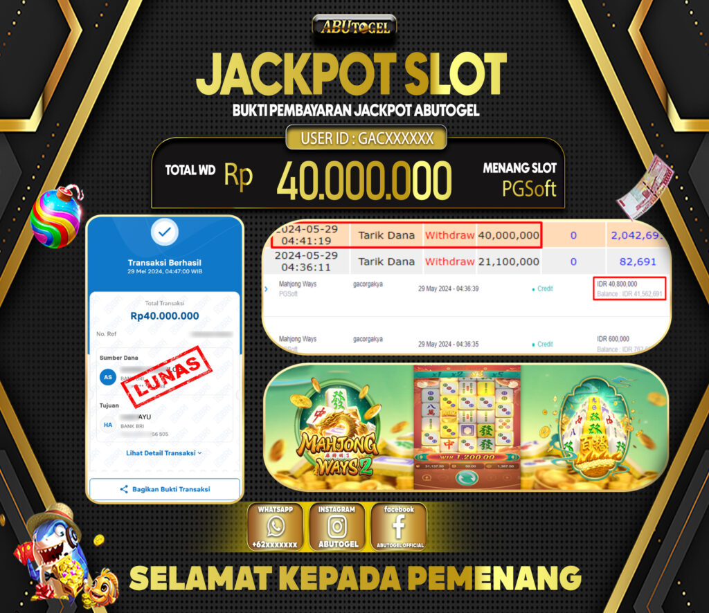 3 min readBukti Jackpot ABUTOGEL Slot Online Rabu 29 Mei 2024 – ABUTOGEL adalah situs slot gacor maxwin terpercaya. Berikut ini kami berikan info buktu jackpot member ABUTOGEL yang sudah kami bayar lunas dalam permainan slot gacor.