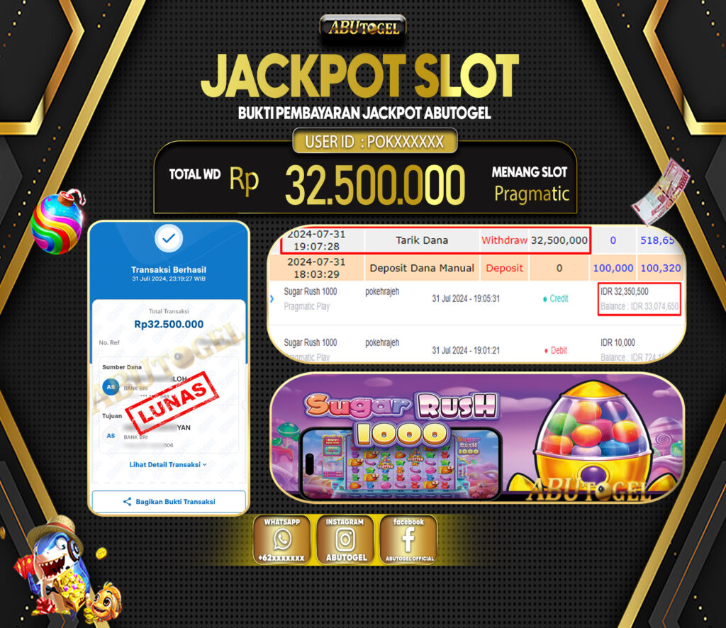 3 min readBukti Jackpot ABUTOGEL Slot Online Rabu 31 Juli 2024 – ABUTOGEL adalah situs slot gacor maxwin terpercaya. Berikut ini kami berikan info buktu jackpot member ABUTOGEL yang sudah kami bayar lunas dalam permainan slot gacor.