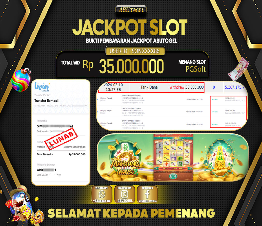 Bukti Jackpot ABUTOGEL Slot Online Sabtu 10 Februari 2024