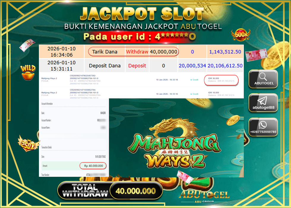 3 min readBukti Jackpot Slot Online ABUTOGEL Sabtu 10 January 2026 – ABUTOGEL adalah bo togel onlinne terpercaya. Berikut ini kami berikan info bukti jackpot member ABUTOGEL yang sudah kami bayar lunas dalam permainan slot online.