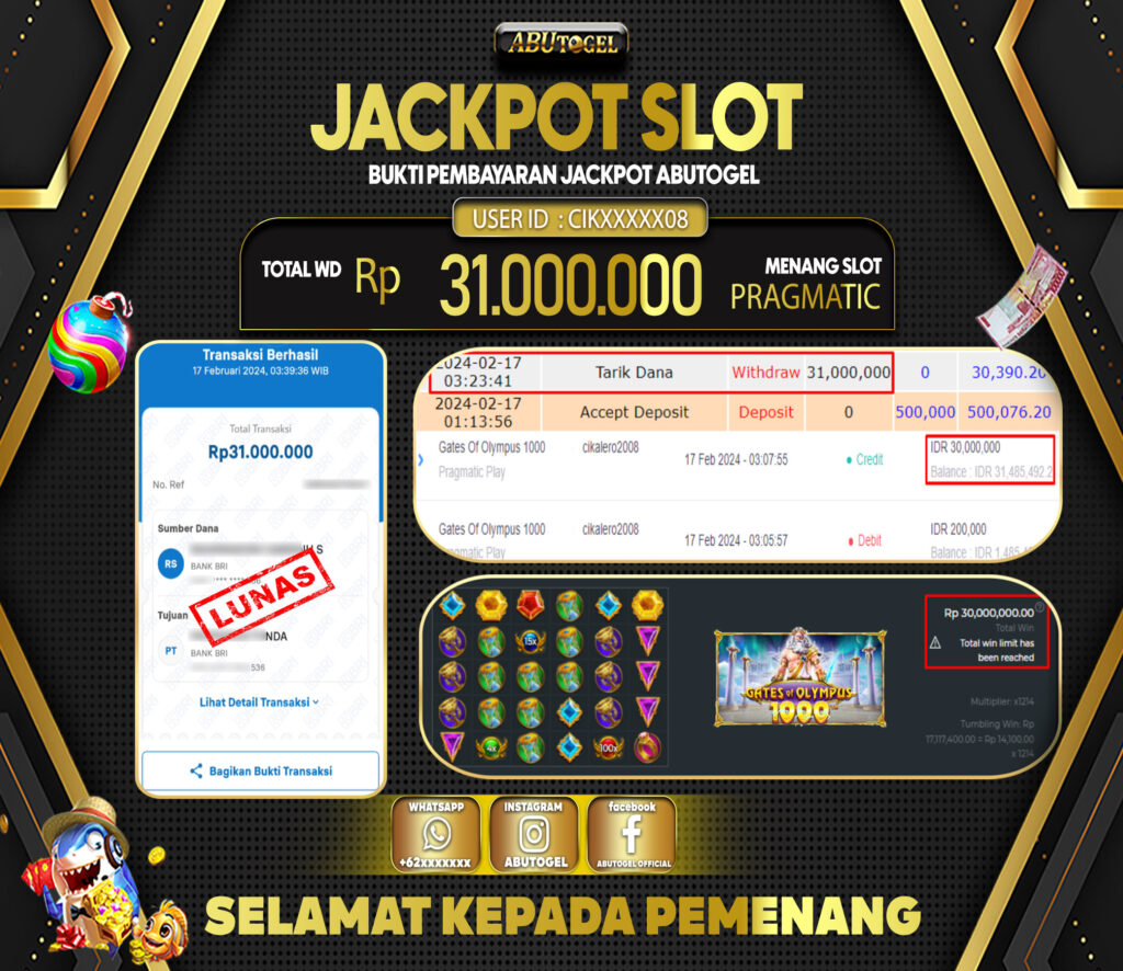 Bukti Jackpot ABUTOGEL Slot Online Sabtu 17 Februari 2024