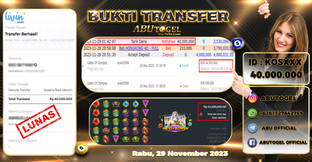 Berikut adalah Bukti Jackpot ABUTOGEL Slot Online Sabtu 29 November 2023 :