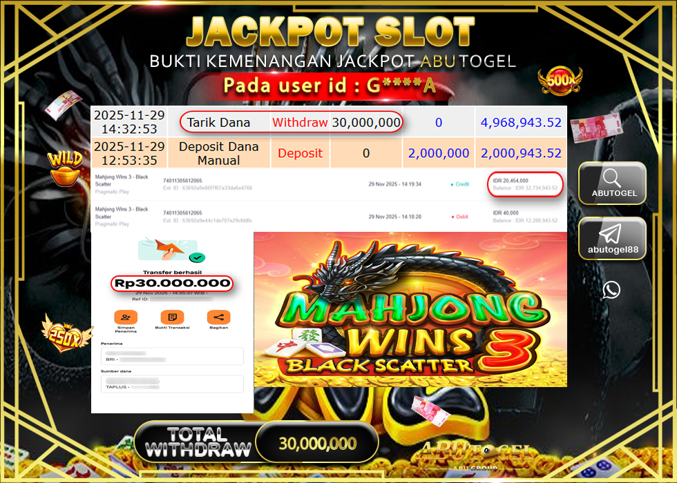 Bukti Jackpot ABUTOGEL Slot Online Sabtu 29 November 2025