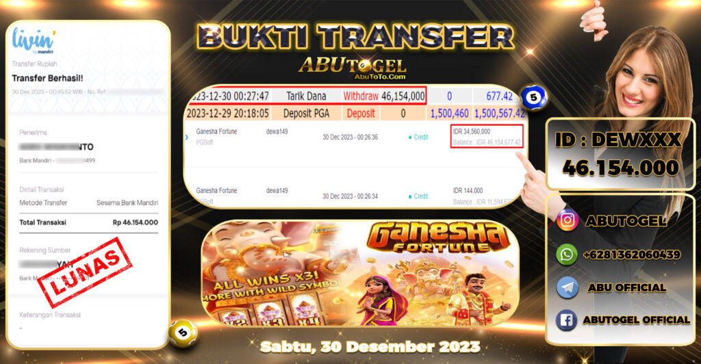 Bukti Jackpot ABUTOGEL Slot Online Sabtu 30 Desember 2023