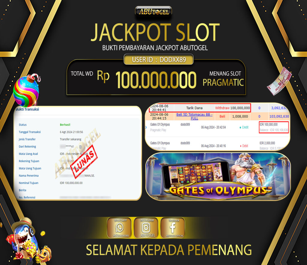 3 min readBukti Jackpot ABUTOGEL Slot Online Selasa 06 Agustus 2024 – ABUTOGEL adalah situs slot gacor maxwin terpercaya. Berikut ini kami berikan info buktu jackpot member ABUTOGEL yang sudah kami bayar lunas dalam permainan slot gacor.