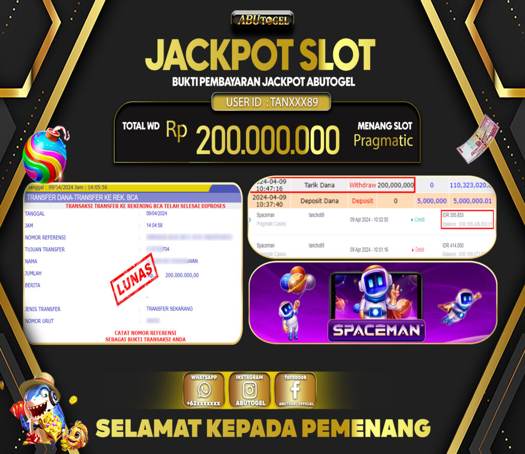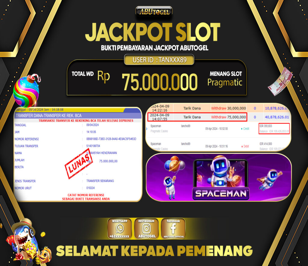 Berikut adalah Bukti Jackpot ABUTOGEL Slot Online Selasa, 09 April 2024 :