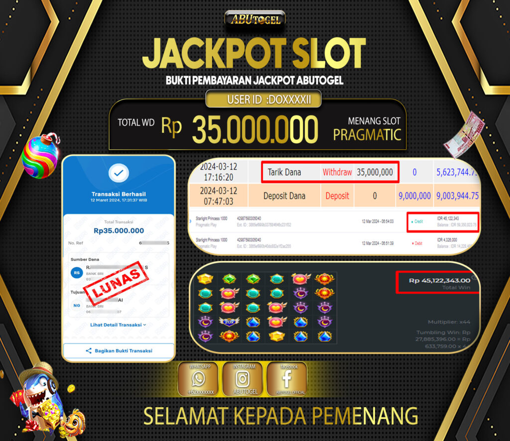 3 min readBukti Jackpot ABUTOGEL Slot Online Selasa 12 Maret 2024 – ABUTOGEL adalah situs slot gacor maxwin terpercaya. Berikut ini kami berikan info buktu jackpot member ABUTOGEL yang sudah kami bayar lunas dalam permainan slot gacor.