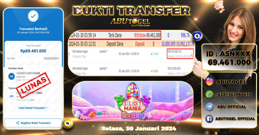 3 min readBukti Jackpot ABUTOGEL Slot Online Selasa 30 Januari 2024 – ABUTOGEL adalah situs slot gacor maxwin terpercaya. Berikut ini kami berikan info buktu jackpot member ABUTOGEL yang sudah kami bayar lunas dalam permainan slot gacor.