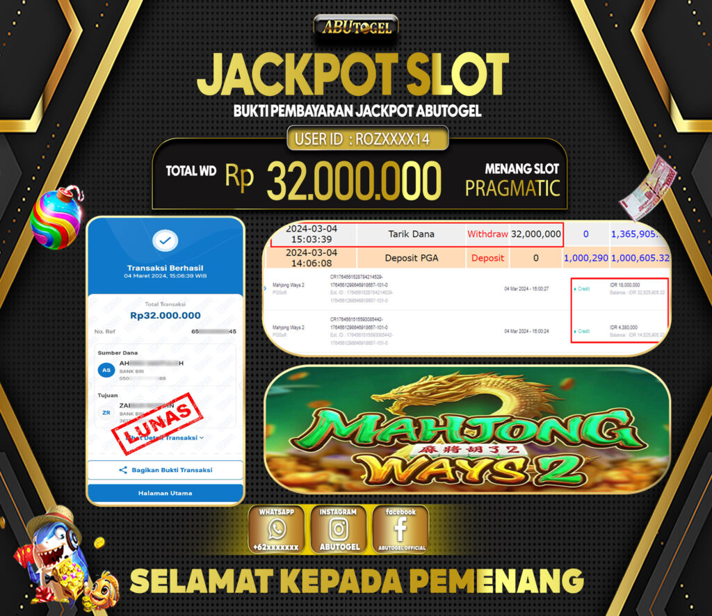 3 min readBukti Jackpot ABUTOGEL Slot Online Senin 04 Maret 2024 – ABUTOGEL adalah situs slot gacor maxwin terpercaya. Berikut ini kami berikan info buktu jackpot member ABUTOGEL yang sudah kami bayar lunas dalam permainan slot gacor.