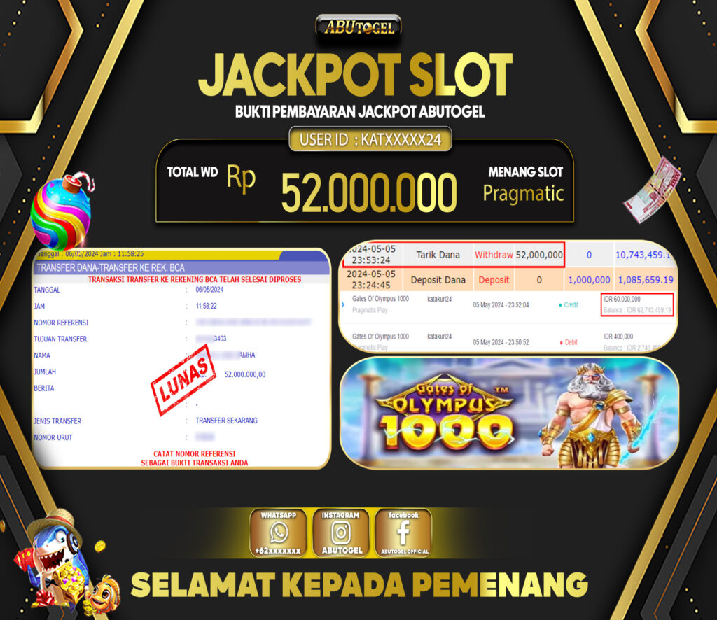 Berikut adalah Bukti Jackpot ABUTOGEL Slot Online Senin, 06 Mei 2024 :