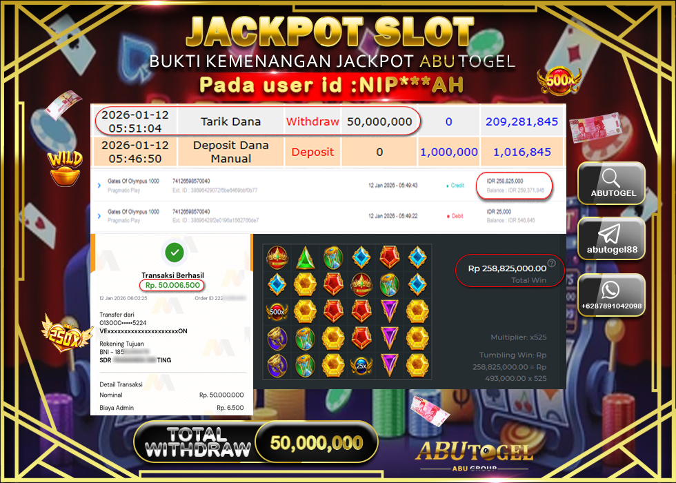 Bukti Jackpot ABUTOGEL Slot Online Senin 12 January 2026