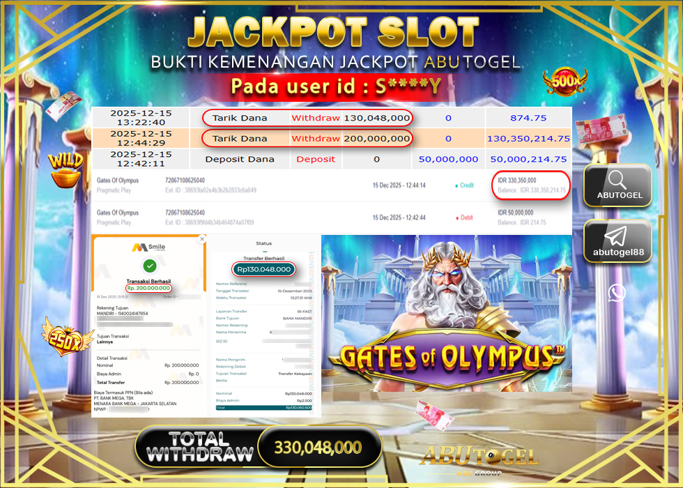 Bukti Jackpot ABUTOGEL Slot Online Senin 15 Desember 2025