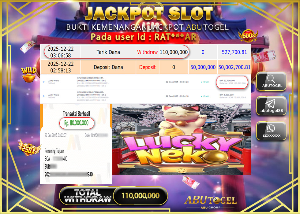 Berikut adalah Bukti Jackpot Slot Online ABUTOGEL Senin 22 Desember 2025 :