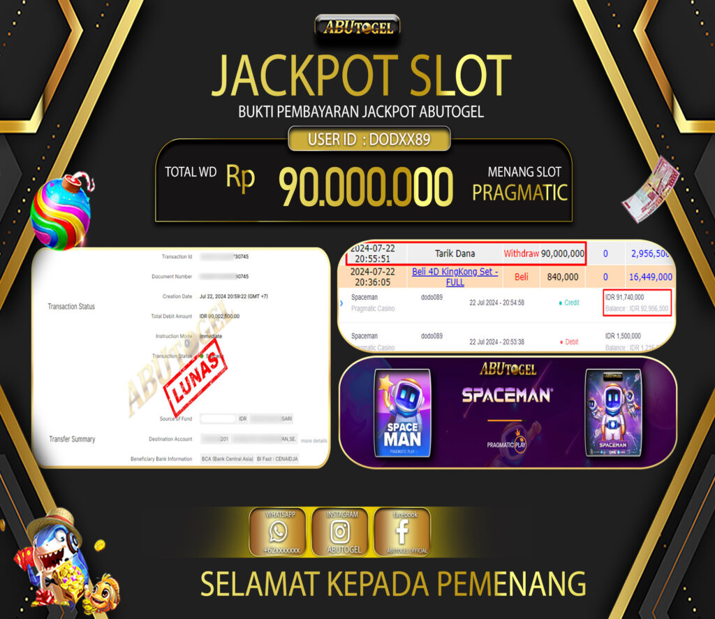 3 min readBukti Jackpot ABUTOGEL Slot Online Senin 22 Juli 2024 – ABUTOGEL adalah situs slot gacor maxwin terpercaya. Berikut ini kami berikan info buktu jackpot member ABUTOGEL yang sudah kami bayar lunas dalam permainan slot gacor.