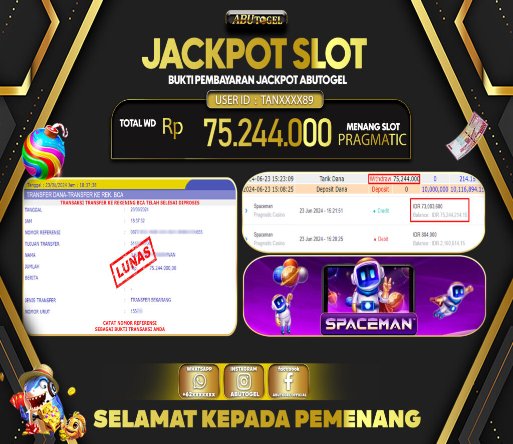 3 min readBukti Jackpot ABUTOGEL Slot Online Senin 24 Juni 2024 – ABUTOGEL adalah situs slot gacor maxwin terpercaya. Berikut ini kami berikan info buktu jackpot member ABUTOGEL yang sudah kami bayar lunas dalam permainan slot gacor.