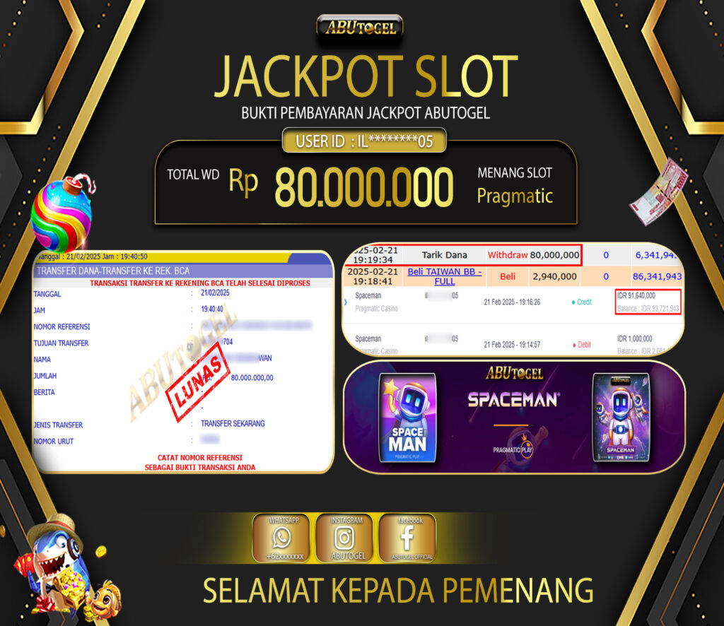 Berikut adalah Bukti Jackpot ABUTOGEL Slot Online Jumat. 21 Februari 2025 :