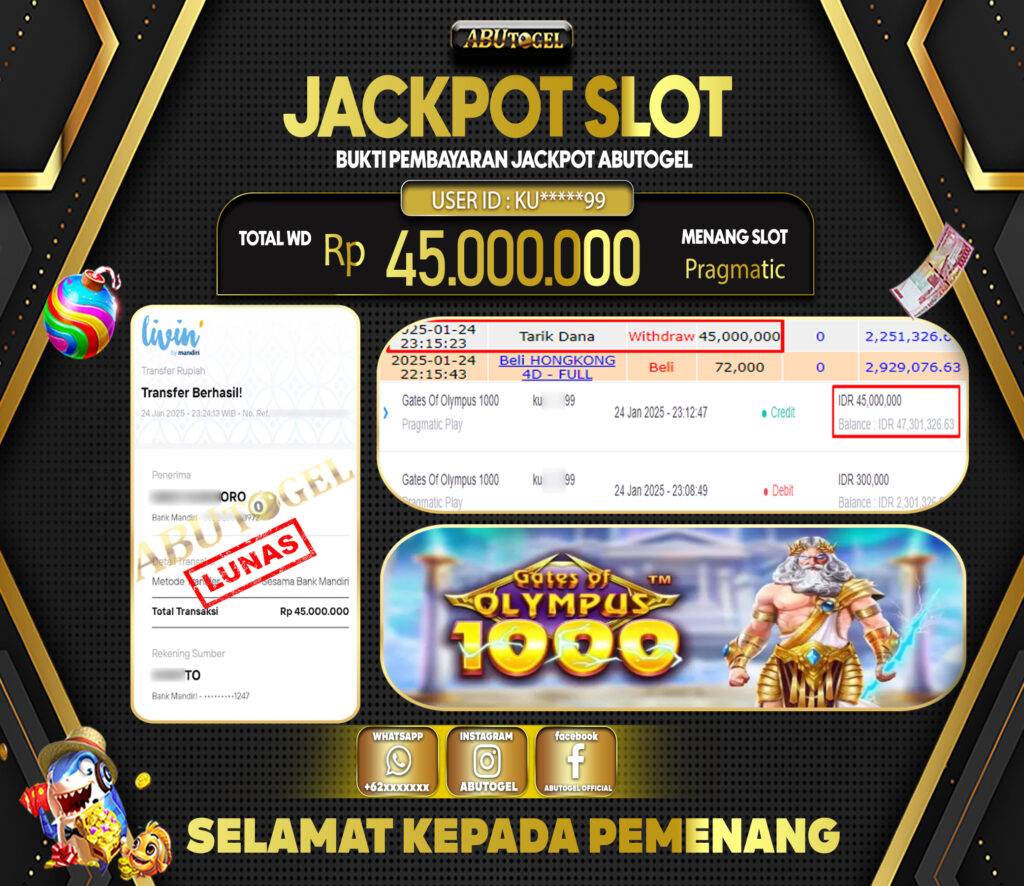 Berikut adalah Bukti Jackpot ABUTOGEL Slot Online Jumat, 24 Januari 2025 :