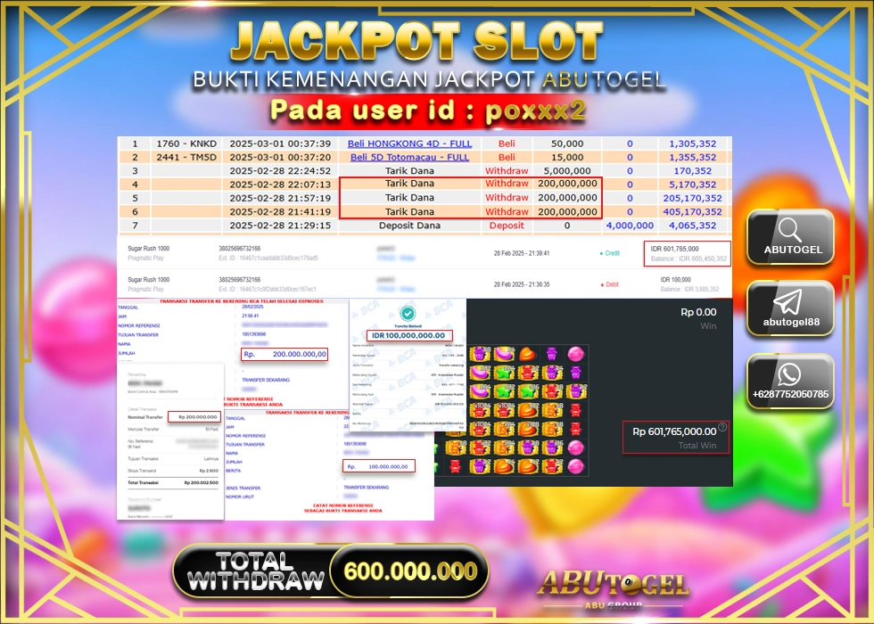Berikut adalah Bukti Jackpot ABUTOGEL Slot Online Jumat, 28 Februari 2025 :