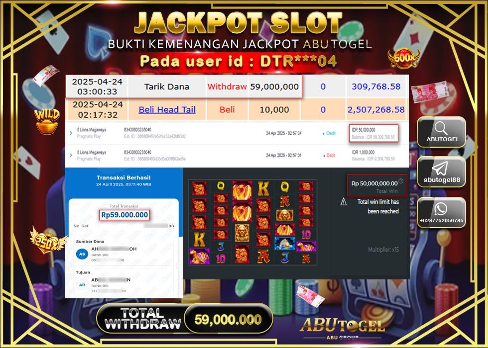 Berikut adalah Bukti Jackpot ABUTOGEL Slot Online Kamis, 24 April 2025 :