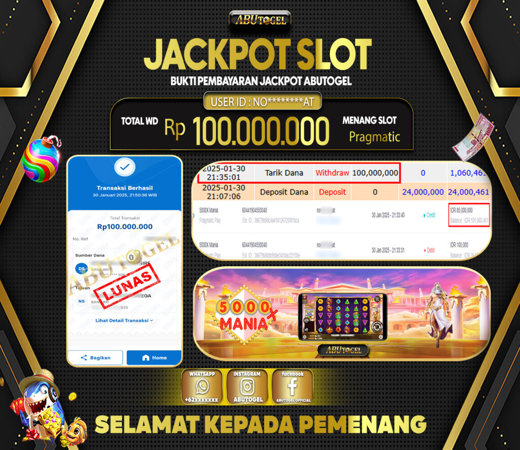 3 min readBukti Jackpot ABUTOGEL Slot Online Kamis 30 Januari 2025 – ABUTOGEL adalah situs slot gacor maxwin terpercaya. Berikut ini kami berikan info buktu jackpot member ABUTOGEL yang sudah kami bayar lunas dalam permainan slot gacor.