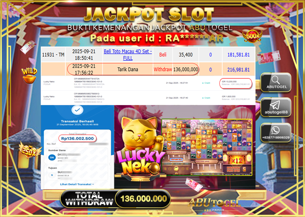 Berikut adalah Bukti Jackpot ABUTOGEL Slot Online Minggu 21 September 2025 :