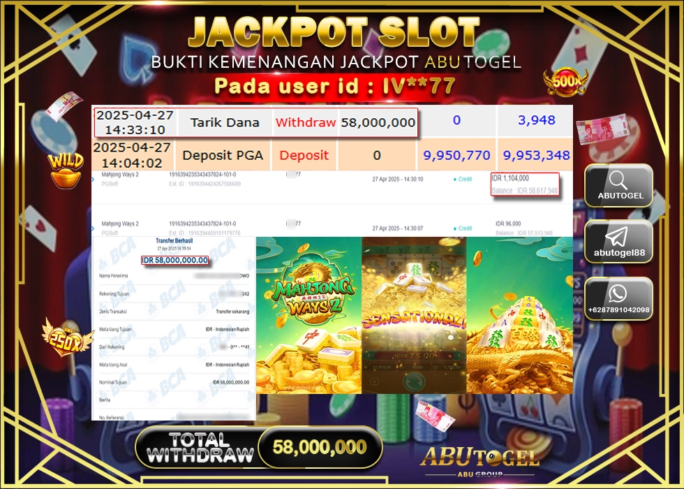Bukti Jackpot ABUTOGEL Slot Online Terbaik Minggu 27 April 2025