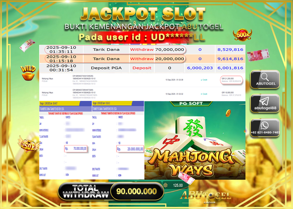 Berikut adalah Bukti Jackpot ABUTOGEL Slot Online Rabu 10 September 2025 :
