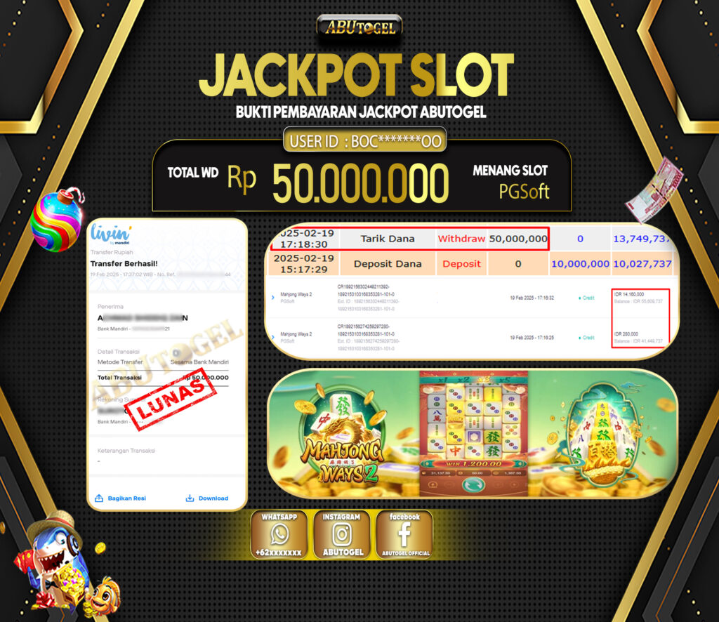 3 min readBukti Jackpot ABUTOGEL Slot Online Rabu 19 Febuari 2025 – ABUTOGEL adalah situs slot gacor maxwin terpercaya. Berikut ini kami berikan info buktu jackpot member ABUTOGEL yang sudah kami bayar lunas dalam permainan slot gacor.