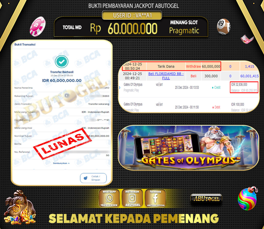 3 min readBukti Jackpot ABUTOGEL Slot Online Rabu 25 Desember 2024 – ABUTOGEL adalah situs slot gacor maxwin terpercaya. Berikut ini kami berikan info buktu jackpot member ABUTOGEL yang sudah kami bayar lunas dalam permainan slot gacor.