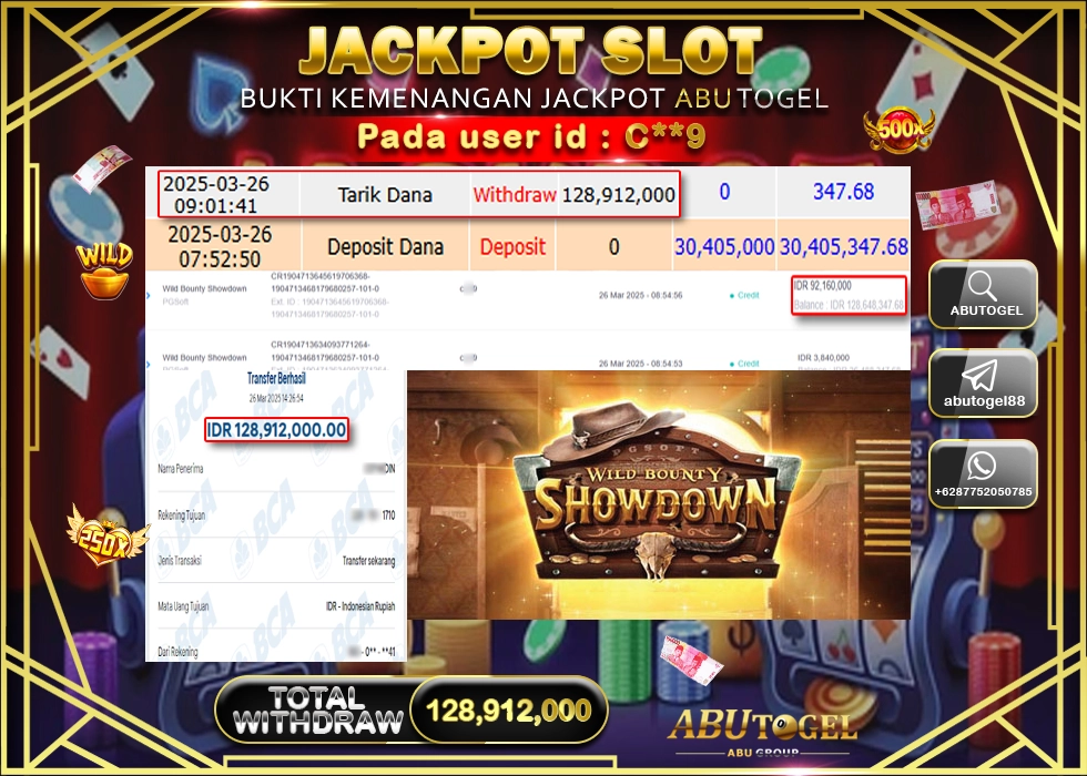 Berikut adalah Bukti Jackpot ABUTOGEL Slot Online Rabu, 26 maret 2025 :