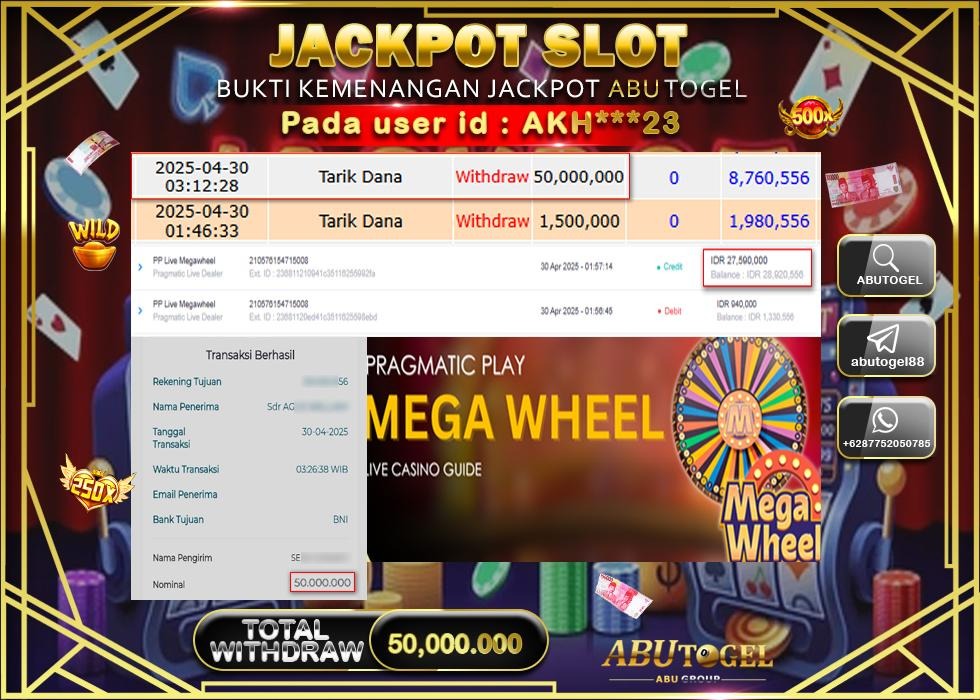Berikut adalah Bukti Jackpot ABUTOGEL Slot Online Rabu, 30 April 2025 :