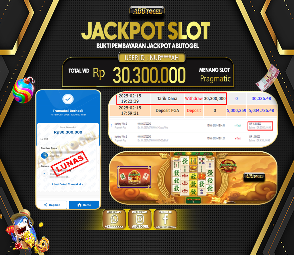 3 min readBukti Jackpot ABUTOGEL Slot Online Sabtu 15 Febuari 2025 – ABUTOGEL adalah situs slot gacor maxwin terpercaya. Berikut ini kami berikan info buktu jackpot member ABUTOGEL yang sudah kami bayar lunas dalam permainan slot gacor.